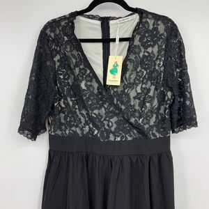 Nemidor Womens 14 Dress Faux Wrap Pin Up Holiday Party Floral Lace Classic NEW