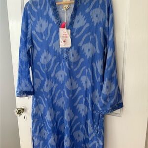 Nemo with Love Sapphire Short Kaftan Dress Ikat Blue $278 NWT Medium Tuckernuck