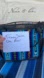 Chic Nena & Co. tote with vibrant blue and black stripes. Features bold patterns and sturdy handles.