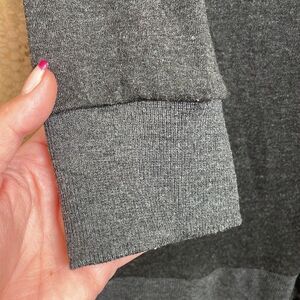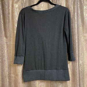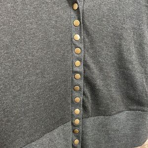 Pretty dark gray cardigan sweater with bronzey colored snap buttons. Sleeves are 3/4 length. Size is a M, fits 8-10 best. Smoke and pet free home. Nice and stretchy material. Cotton/spandex blend. Very cute and versatile piece for any wardrobe!