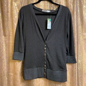 Nenona dark gray 3/4 sleeve snap button cardigan sweater, size M NWT