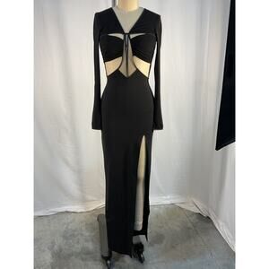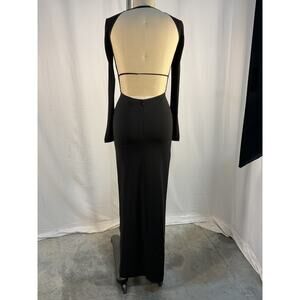 Nensi Dojaka Deep V-Neck Black Viscose Draped Bra Long Sleeve Dress Size S: unlined, hidden back zip closure, front and back cut-outs, side seam slit.