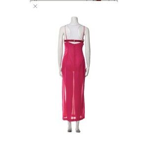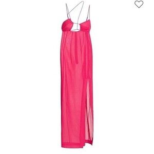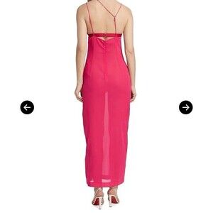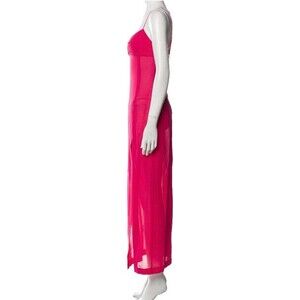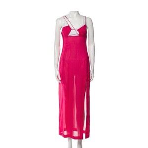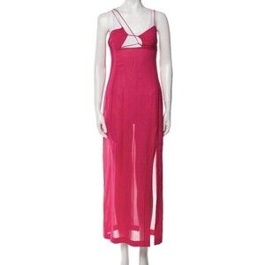 Nensi Dojaka Fuschia Asymmetric Neck Strap Maxi Thigh High Slit Slip Dress M NEW