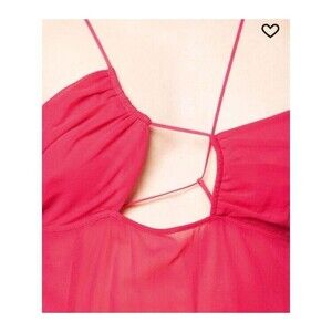 Nensi Dojaka Pink Asymmetric Neck Strap Maxi Thigh High Slit Slip Cut Out Semi Sheer Dress Size M