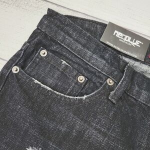 Neo Blue Distressed Black Denim Shorts Size 32 Men