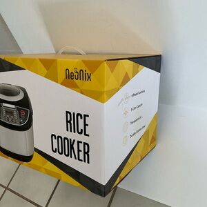 Effortlessly cook perfect rice with the Rice Cooker. Its sleek black and silver design complements any kitchen decor. New, in original box.
