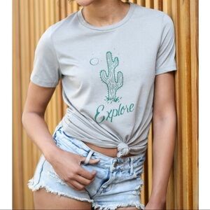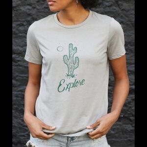 Brand new without tags. Showcase your free-spirited style with this cactus and moon graphic tee, made from a lightweight cotton-blend for breathable comfort both in the desert and beyond. Color is a very muted taupe green. Super soft and comfy. Size Small. Sold at UO and Nordstrom.