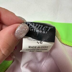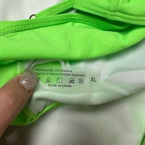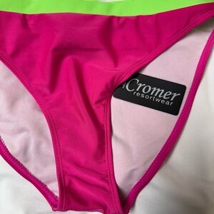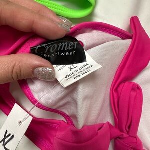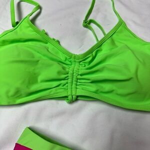 Vibrant pink and green bikini set. Stylish and eye-catching.