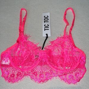 Neon Blacklight Glowing Pink Lace Bralette Top