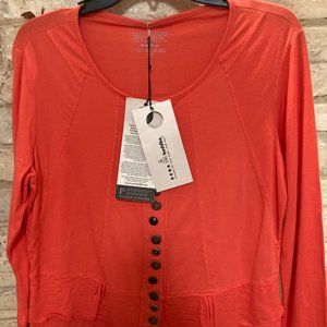 New Neon Budda 100 % pre-shrunk cotton poppy color button down top, women's medium