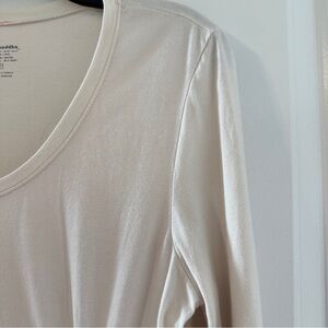 Neon Buddha Beige Scoop Neck Ruched Tunic Top Women's Size Large Lagenlook Boho