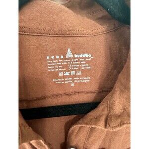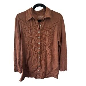 Neon Buddha Brown Ruffle Trim Novelty Media Metal Buttons A Line Tunic Top M