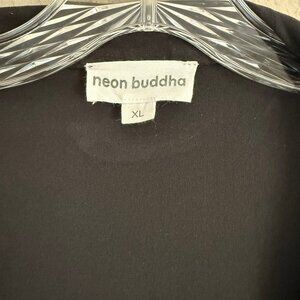 Neon Buddha Long Black Ruffle Jacket – Warm Knit, Zipper Front, Size XL
