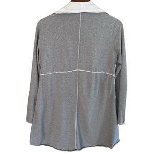 Preowned condition- super comfortable cardigan with pockets! 96% cotton, 4% spandex- grey with white- size small- please see pictures for details