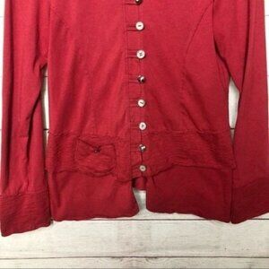 Neon Buddha Red Variety Button Down Ruffle Long Sleeve S