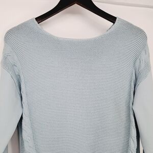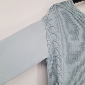 Neon Buddha Sky Blue Cable Knit Front Ponte Knit Side Zip Sweater