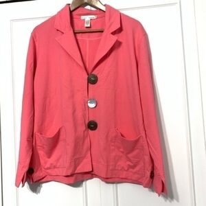Neon Buddha Womens Small Jersey Knit Travel Blazer Jacket Coral Pink 3 Button Cardigan S