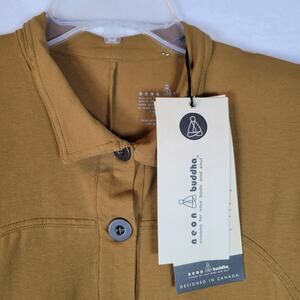 Neon Buddha Womens Button 3/4 Sleeve Tunic Top Size Medium Brown Lagenlook Boho