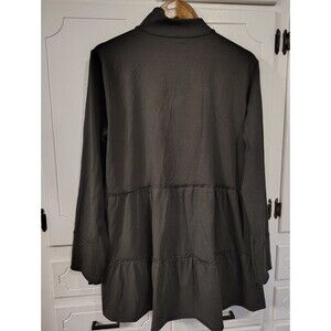 Neon Buddha Women's XL Jacket Coat Cotton Black Button Lagenlook Boho Ruffle
