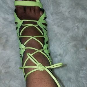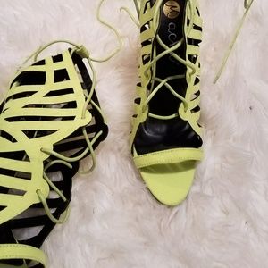 Neon Cut Out Lace Up Heels