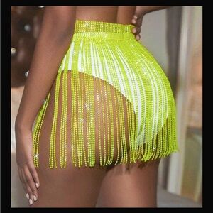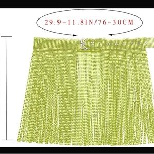 Neon Fringe Sparkly Green Belt with rhinestone tassels