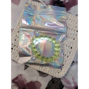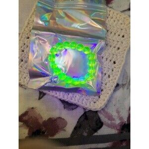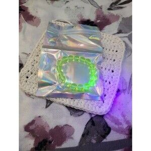 Add a pop of electric color with this Neon Green Beaded Stretch Bracelet, featuring translucent round beads that glow under light. Packaged in a holographic pouch, this piece is perfect for Y2K, rave, or kawaii-inspired styling.