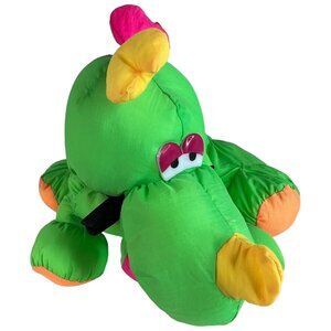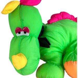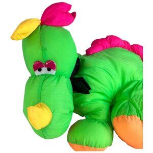 Neon Green Dinosaur Nylon Plush Makes Noise Stuffed Animal Toy Puffalump Style