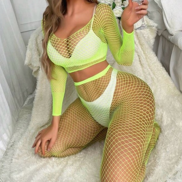 Neon Green Fishnet Set