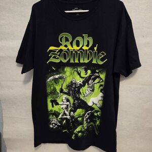Neon Green Graphic Rob Zombie Heavy Metal T-Shirt 100 % Cotton Size Small
