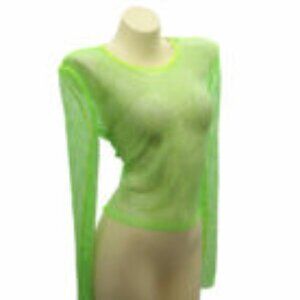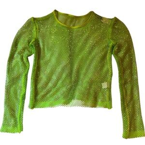 Neon Green Sheer Mesh Long Sleeve Rave Outfit Top With Rhinestone Crystals NWT