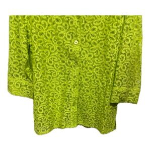 Neon Green Yellow Lace Button Up Coverup Long Sleeve Formal Size XL Business