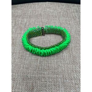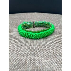 Neon Green Beaded Spike Style Bracelet on Mesh Slide in Lock Clasp