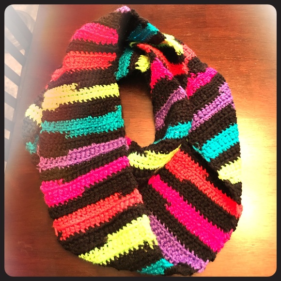Neon Infinity Scarf. Very beautiful colors. Goes around an average size adult neck