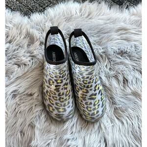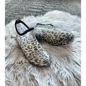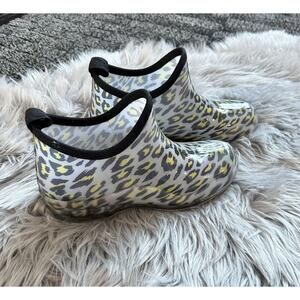 Neon Leopard Printed Grey Slip In Women's Rain Boots Size 7