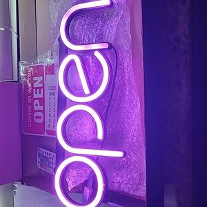 Vibrant neon open sign available in pink, blue, green, purple, and orange. Perfect for businesses. NEW IN BOX!