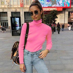 Amazing neon pink mockneck top.