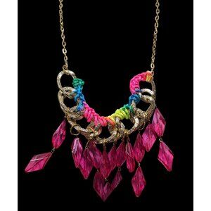Neon Rainbow Glam Gem Fringe Statement Necklace