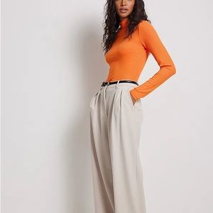 Neon orange ribbed mock neck / turtleneck sweater. Perfect condition. Size small fits XS/S. Missing brand tag. Neck zips up half way in the back for a fitted look. Medium weight sweater material.
