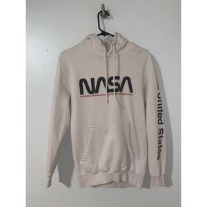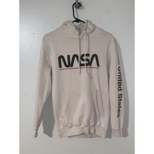 Neon Riot Hoodie Unisex Cream NASA Fall Winter Drawstring Size Small