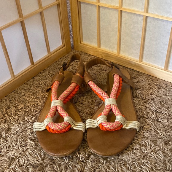 Hardly worn, still in great condition and very comfortable sandals, easy to slide on and off - you don’t need to unbuckle them every time.