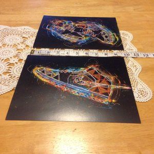 Vivid, neon colors. Fun unframed prints set. These are new but there is a light indentation at top of one and a small crease at corner of another, see photos.