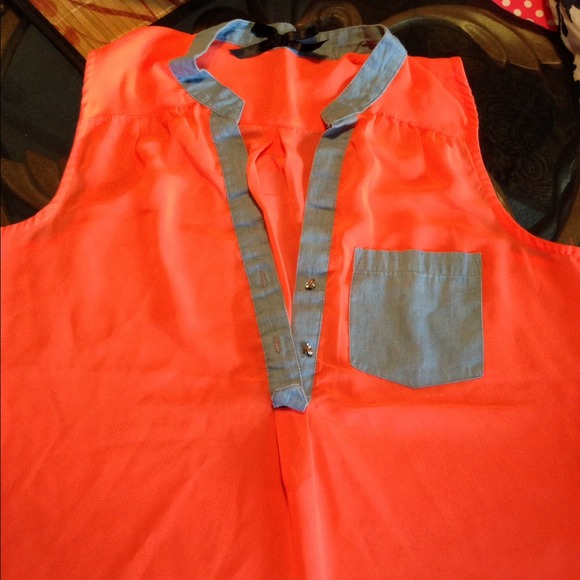 Denim and Neon Orange Tunic. Perfect for the summer. Rhinestone Accents. Worn only once !
