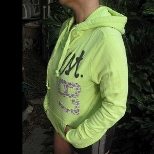 Neon Yellow Aeropostale Drawstring Hooded Pull Over Sweater Aero Hoodie Leopard