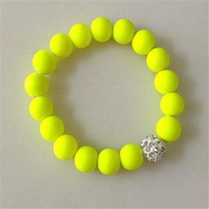 Neon Yellow Ball Shamballa Stretch Bracelet Unisex