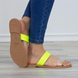 Neon Yellow Clear Transparent Strap Flat Sandals