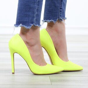 Neon Yellow Faux Leather Pointy Toe High Heels