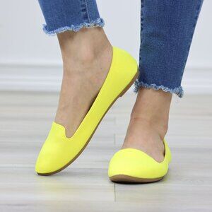 Neon Yellow Faux Suede Rounded Toe Slip On Flat Shoes
