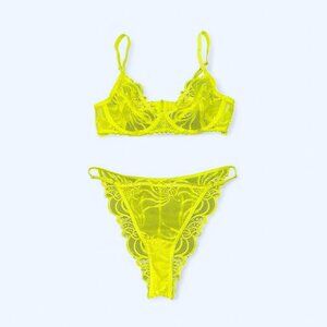 Neon Yellow Lace Lingerie Set