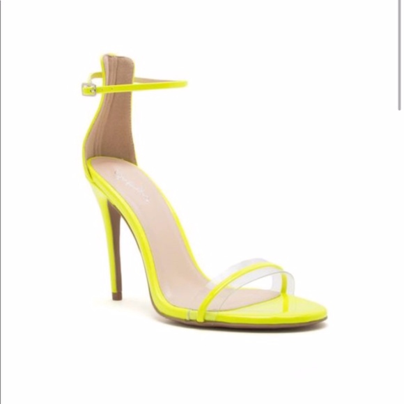 Beautiful neon yellow sandals with ankle strap. Heel measures approximately four inches. These stunning shoes will definitely turn heads!!