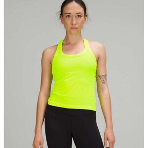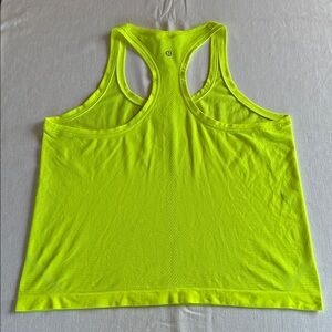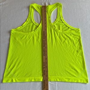 Lightweight neon yellow racerback tank designed for active days. Breathable, quick-dry fabric keeps you cool during workouts. Sleek racerback cut offers full range of motion. Vibrant yellow color enhances visibility and style. Highlight yellow.